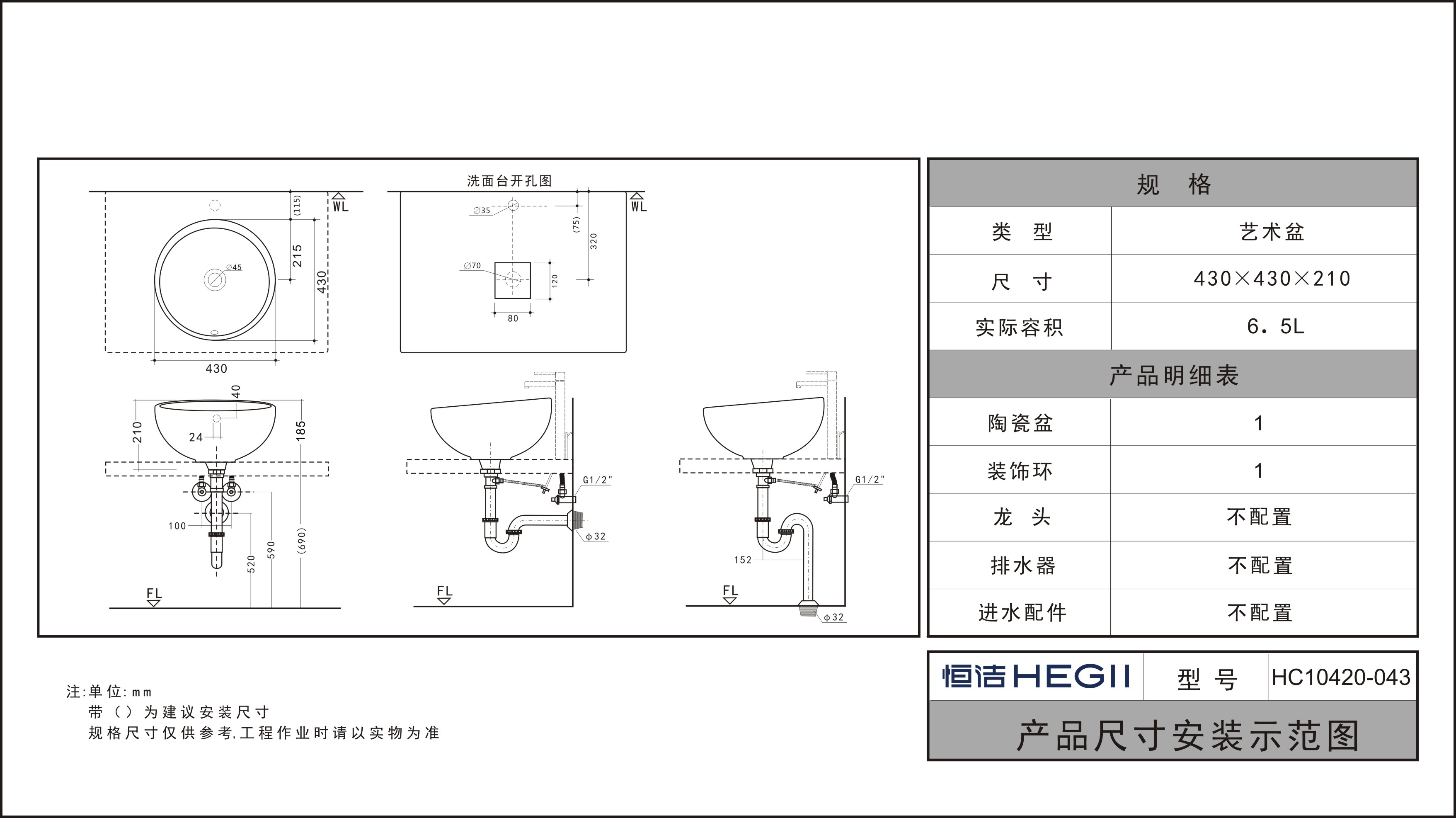 尺寸:430x430x210mm